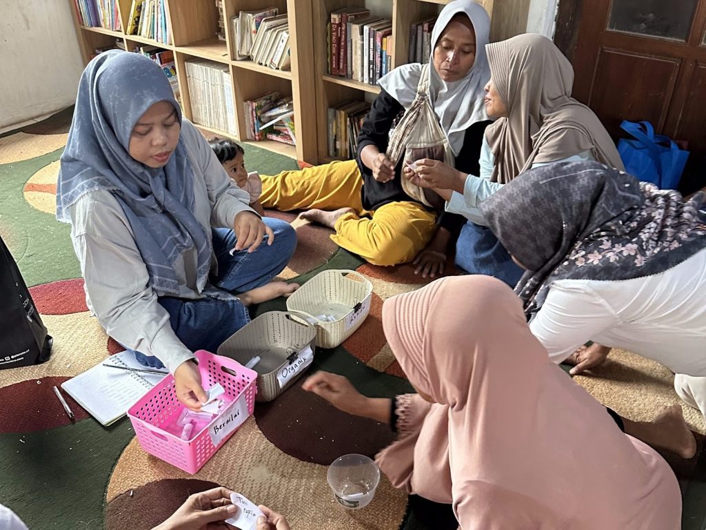 Mak Siti, salah satu peserta, mengaku bahwa sampah plastik masih menjadi jenis sampah terbanyak di lingkungannya. Ia juga menuturkan bahwa sebagian besar ibu-ibu di desa tersebut belum terbiasa memilah sampah, bahkan cenderung langsung membakarnya ketimbang menyetorkannya ke bank sampah. Padahal, praktik ini justru memicu masalah baru berupa polusi udara yang berbahaya bagi kesehatan, karena asap dari pembakaran sampah anorganik mengandung zat beracun.